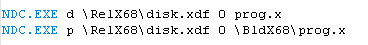 basic dos boot, and automatically starts prog.x We first delete the old version of the program from the disk... then we add the new file to the disk image |