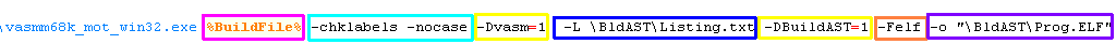 executable files... I use this build command in my batch files.![]() We need to specify the source asm file to compile We're specifying that VASM should ignore case, and check if labels look like commands (in case we forgot our tab on a command) I define a couple of symbols, but you won't need them for the simple example... We're telling VASM to output a listing. This is a text file which shows how the asm commands convert to bytecode... We don't need it - but it may help us if we have problems! We need to specify to output a valid amiga executable file Finally, we specify a filename for the output file |