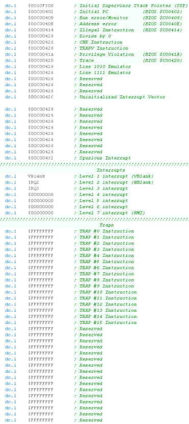 'Traps' - these are needed by the processor. We then need the cartridge header... a sample one is shown. |