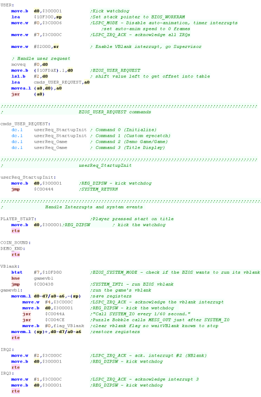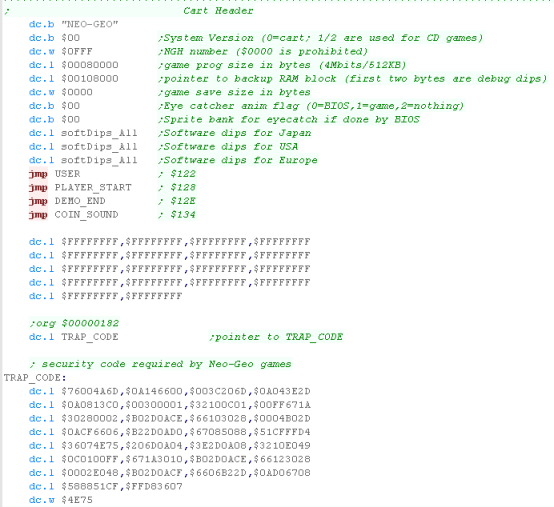 built on the NeoGeo... This is because of the way the hardware is designed, each 'module' (Graphics sound etc) has it's own physically independent rom files. The NeoGeo CD is different, it has ram that can be filled by our program, but it's slower as a result. |