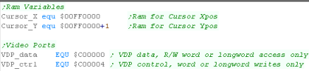 X and Y) we need these for our text writing. We're also going to define two symbols for VRAM data and VRAM address/control - we'll need these for writing to VRAM |