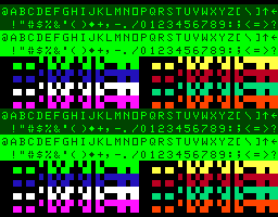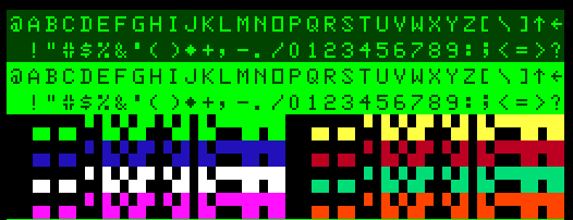 | Semigraphics 4 | 0 | ? | ? | 0 | ? | 0 | 0 | 0 | 8 color | 64 x 32 | 512 | (IA) |