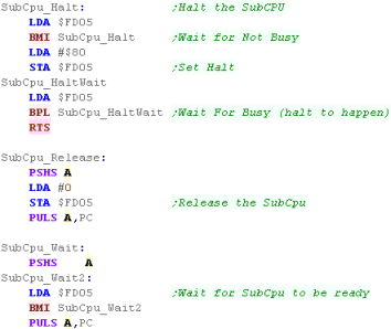 2. Halt the Sub Cpu (set Bit 7 of $FD05 to 1)