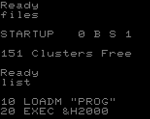 we use 'LOADM "PROG.BIN" to load our program 'PROG' in memory, then