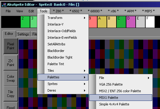 Should set the color palette of Akusprite to be correct, and your exports should now appear in the MSX1 as they do in the editor.
