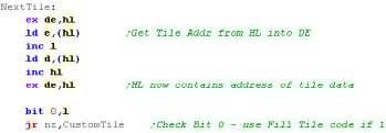 we're selecting the VRAM address in DE ... DE must contain VRAM