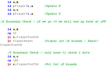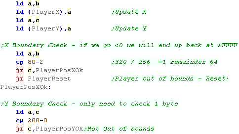 We'll check if X (in B) goes over 256-8, and if Y (in C) goes over