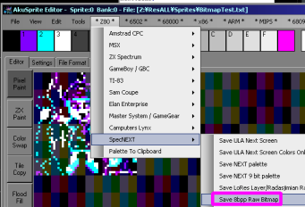 Use Save 8bpp raw bitmap from the Z80->SpecNext menu |