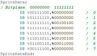 We need some bitmap data... In Mode 1 each pixel is 2 bits - so 2